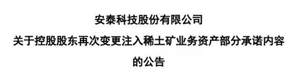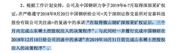 2018年12月10日,安泰科技收到公司控股股东再次变更注资承诺的函,即调整为“承诺在2019年10月31日前完成山东稀土控股权注入的决策程序”。