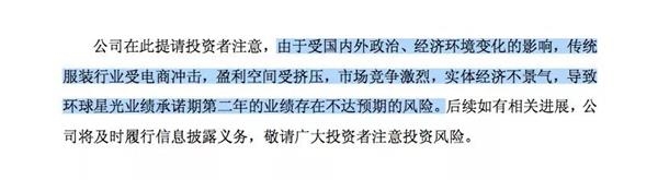 事实上,延期披露业绩事小,市场更关注的则是,环球星光过去一年是否足额完成业绩承诺。毕竟,环球星光业绩承诺期第一年(即2016年10月2日至2017年10月1日)业绩就没有达到预期。当年公司扣非后净利润为1.39亿元,业绩承诺完成率约为33.61%,与业绩承诺数6220万美元(以2017年9月30日汇率折算,约4.13亿元人民币),还有2.74亿元的差额。