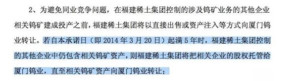 不过,厦门钨业表示,福建稀土集团本次修订部分承诺,在通过股东大会审议后,将继续加快福建稀土集团控制的钨矿山的开发进度及注入上市公司进程。