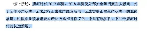 然而,2016年7月,一起安全事故以及行政处罚却令唐河时代一直处于停工整顿状态,至今尚未恢复生产,无法实现2017年、2018年经营业绩。