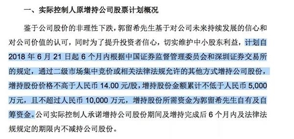 2018年6月,豫金刚石实际控制人郭留希承诺,2018年6月21日起6个月内增持公司股份累计不低于5000万元,且不超过1亿元。