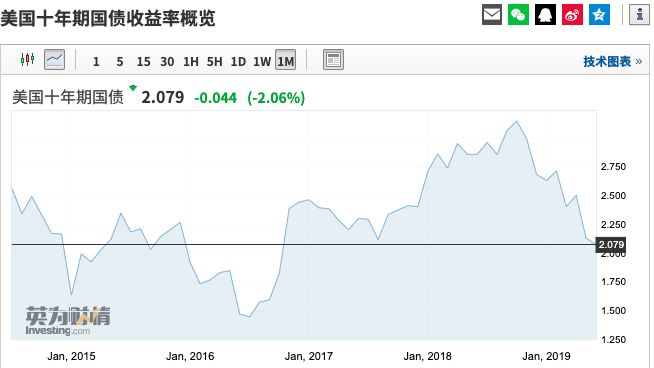 基准10年期国债收益率盘中触及2.05%,创2017年以来新低: