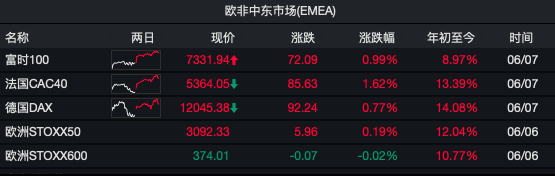 欧股尾盘同样涨幅扩大,泛欧Stoxx 600指数涨超0.8%,至两周最高点位和三周最大单日涨幅;德国DAX指数涨0.74%,英国富时指数涨0.95%,法国CAC指数涨1.5%。