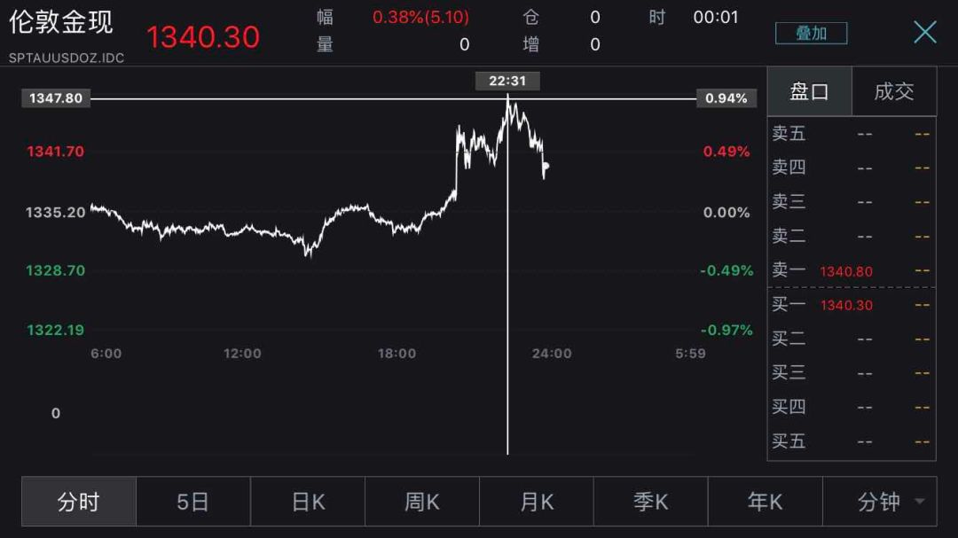 非农数据公布后,国际黄金短线上扬近5美元: