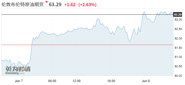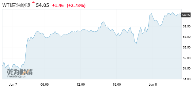 油价涨幅扩大。美油WTI涨破54美元整数关口,最高涨3%,至54.16美元/桶。布伦特原油涨破63美元,最高涨3%或近2美元,至63.43美元/桶。