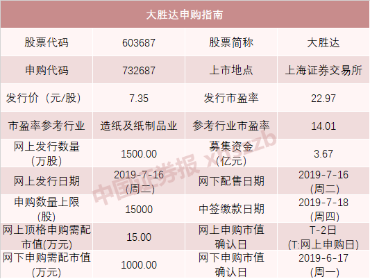大胜达:(申购代码:732687)