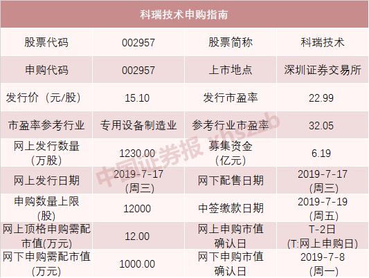 科瑞技术:(申购代码:002957)