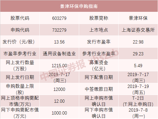 景津环保:(申购代码:732279)