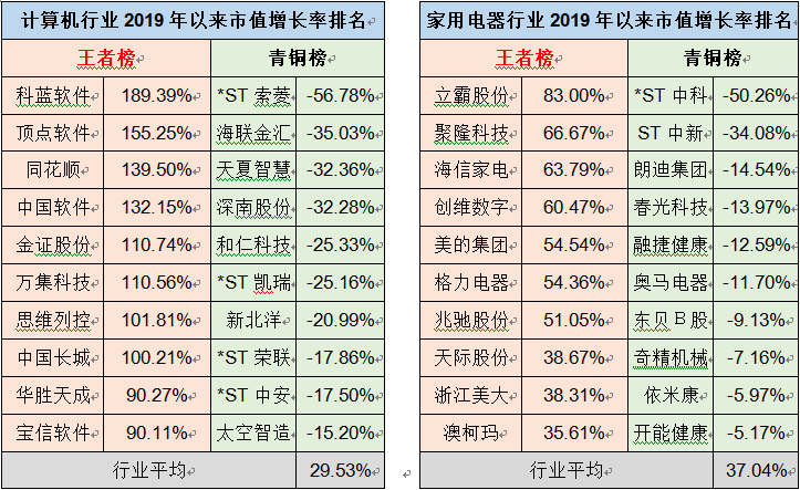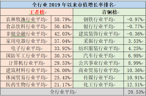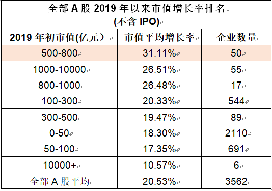 截至7月31日,A股市场共有上市公司3640家,剔除2019年新上市公司78家,以2019年1月1日市值为基准,2019年以来市值平均增长20.53%。以市值增长率为主要排名指标,从省份、行业、市值规模等多个维度进行横纵向比较,发现存在民营企业增长好于其他企业、500-800亿市值规模的公司市值增长最好、市值增长超过50%的有贵州和四川两个省份、农林牧渔行业和食品饮料行业增长超过50%等特点。