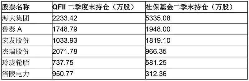 二季度末同时被QFII和社保基金持有的股票(截至8月5日披露数据)