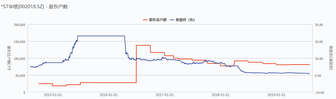 从*ST华信股东户数变化来看,2018年一季度末时,股东数为9.19万户,近一年多来,股东数虽有所下降,但2019年一季度末股东户数仍有8.11万户。