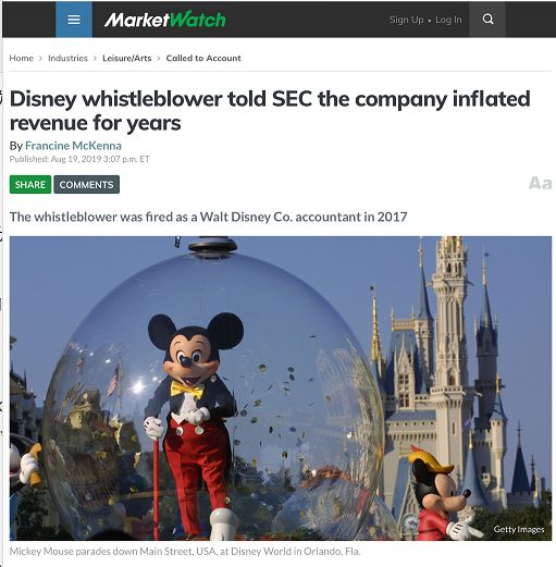 根据美国道琼斯公司旗下金融信息网站market watch报道,在迪士尼工作过18年的运营部门高级财务分析师桑德拉•库巴(Sandra Kuba)指控迪士尼财务造假,公园和度假村业务部门的员工利用公司会计软件的弱点,系统性地夸大了数十亿美元的收入。
