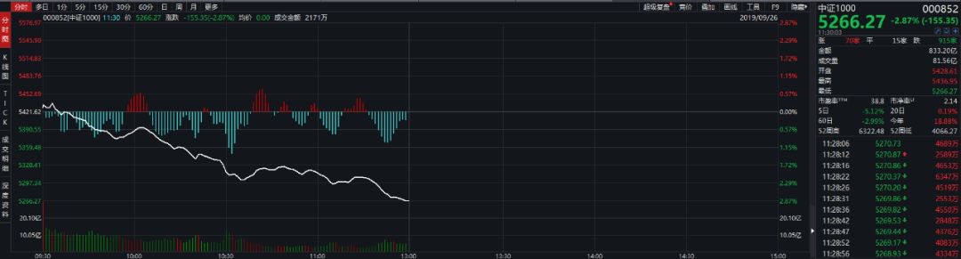 9月25日,上证50指数微跌0.38%,中证1000指数下跌1.94%;9月26日午间收盘,上证50指数上涨0.1%,中证1000指数下跌2.87%。