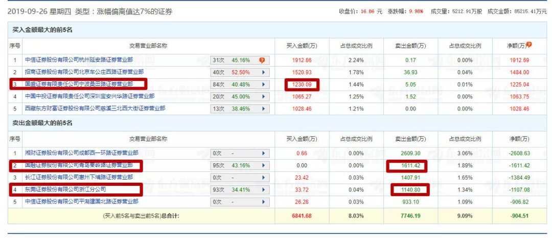 下一个交易日,也就是9月30日,西藏东方财富证券股份有限公司拉萨团结路第二证券营业部、西藏东方财富证券股份有限公司拉萨东环路第二证券营业部又分别卖出835.08万元、815.08万元,位列卖三、卖四席位。