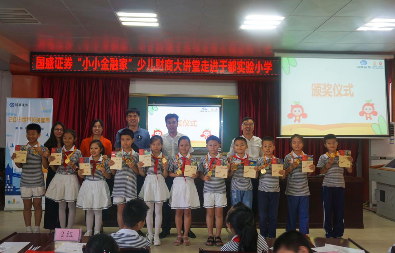 10月9日,国盛证券携手子公司国盛资管,在江西省赣州市于都县实验小学举办了“小小金融家”少儿财商大讲堂专项投教活动。本次活动国盛证券积极落实中国证监会关于推动投资者教育逐步纳入国民教育体系的相关要求,充分结合了自身独具特色且成效显著的教育扶贫项目经验,为下一步在青少年学生群体中进行财商教育创新实践并有机融入证券期货知识奠定了基础,也对目前贫困地区乃至江西全省的财商教育的不足做了一次积极的尝试。