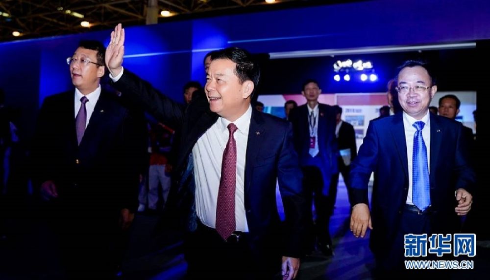 ↑广汽集团董事长曾庆洪莅临现场见证下线仪式。新华网发
