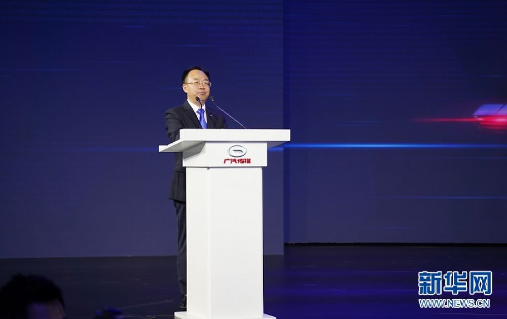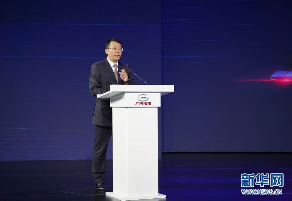 ↑广汽集团总经理、广汽乘用车董事长冯兴亚致辞。新华网发