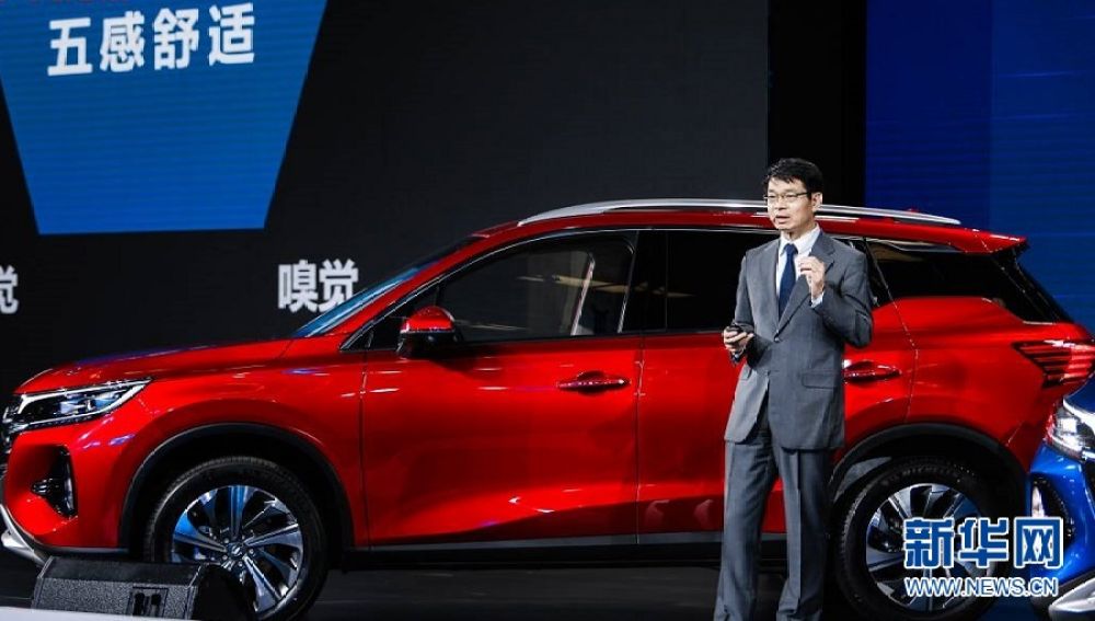 ↑广汽研究院首席技术总监、A产品线总监徐仰汇介绍全新GPMA平台架构及第二代传祺GS4的技术亮点。新华网发