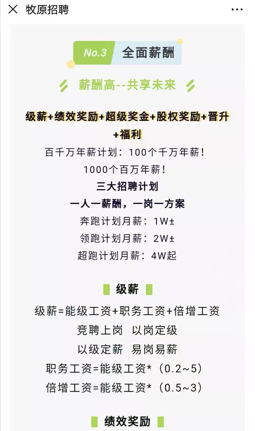 牧原股份旗下公号“牧原招聘”10月发布的校招信息显示,该公司针对不同的学生开出具有吸引力的薪水。