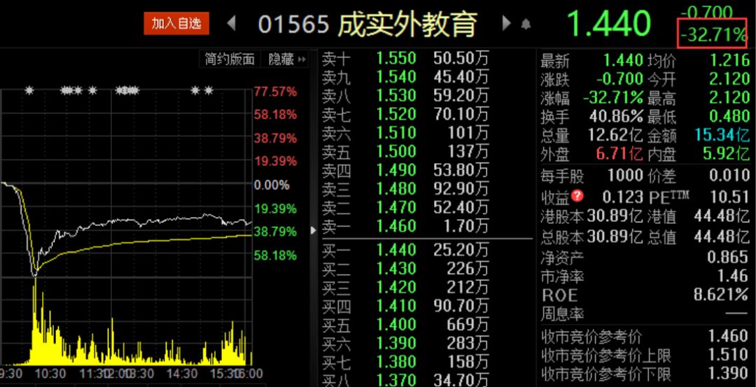 值得一提的是,首控集团的闪崩还波及到另外一只港股——成实外教育。