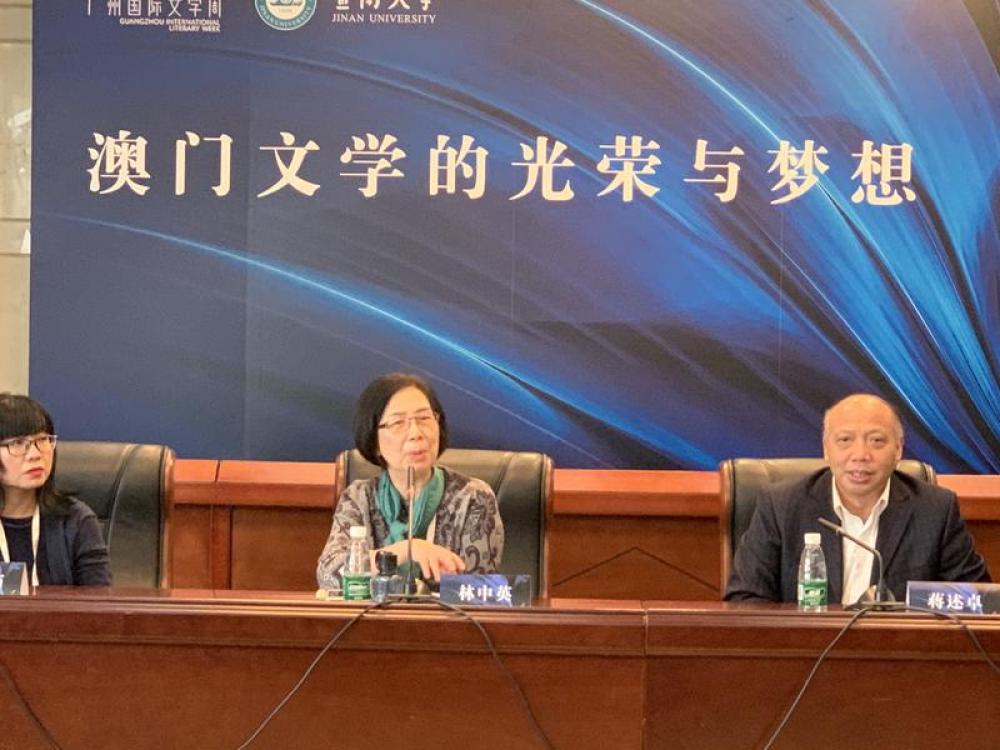 12月16日上午,作为2019广州国际文学周核心活动之一,“澳门文学的光荣与梦想”对话活动在暨南大学举行。广东省作协主席蒋述卓、澳门笔会理事长林中英、《香港文学》主编周洁茹、澳门笔会秘书长廖子馨、澳门作家黄文辉、陆奥雷、杨颖虹、袁绍珊、评论家申霞艳等粤港澳三地作家齐聚,在澳门回归二十周年之际,共话澳门文学的光荣与梦想。
