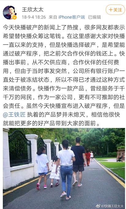 无论如何,属于快播的时代已经终结。在2018年快播传出破产消息之时,王欣太太发微博表示:快播选择破产,是希望能通过破产程序,把之前欠合作伙伴的钱还上。快播出事前,从不欠供应商,合作伙伴的任何费用,但由于当时事发突然,公司所有银行账户一直处于被冻结状态,所以不得已才通过这种方式来清偿债务。