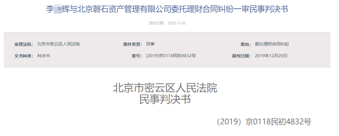 这不,3月26日,北京法院审判信息网就公开了一则委托理财合同纠纷的民事判决书。