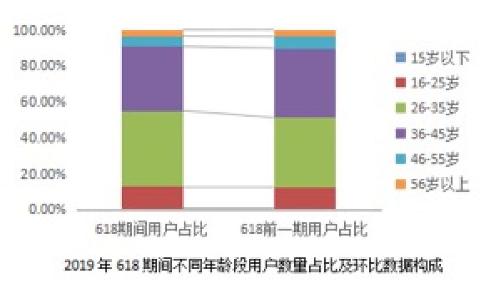 26~35岁和36~45岁的用户是京东2019年全年主要的购书年龄段群体。但2019年618期间环比618前的用户数据,26~35岁的购书用户数量占比有明显的增加,且是618期间占比最高的年龄段群体。16~25岁年龄段的用户数量占比在618期间也有小幅提升。可见,较低年龄段的群体对618的购书优惠活动更加敏感,会较集中的在618参与购书。