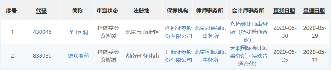 截至目前,在精选层挂牌审议环节被暂缓审议的公司达到两家,分别是圣博润和德众股份,尚未有公司未通过。