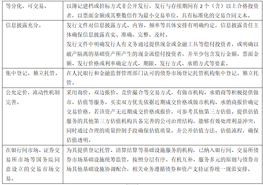 2.征求意见稿:发行文件中明确发行人有义务通过提供现金或金融工具等偿付投资者,或以破产隔离的基础资产所产生的现金流偿付投资者,并至少包含发行金额、票面金额、发行价格或利率确定方式、期限、发行方式、承销方式等要素。