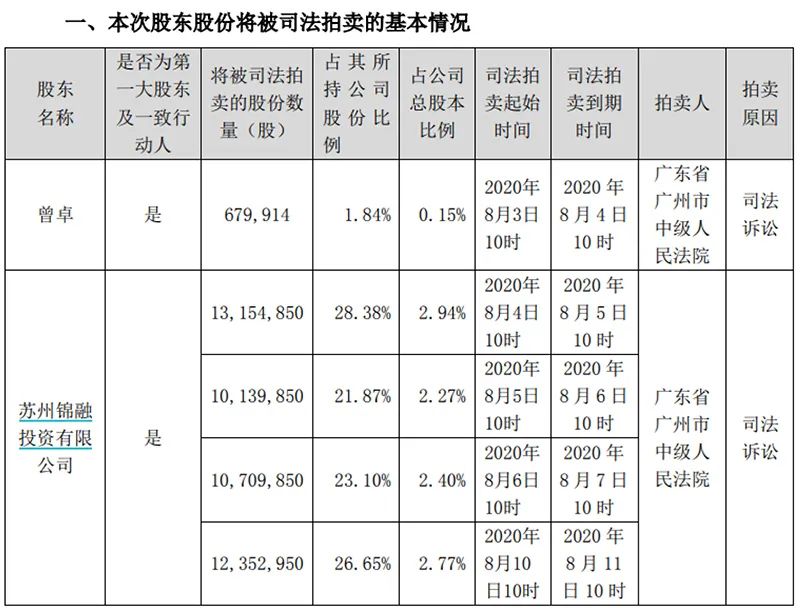 另外,此次即将被司法拍卖的4703.74万股,也已超过上述股东总持股的一半。