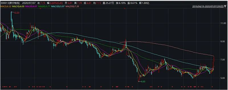 但此后,新宁物流的股价走势便掉头向下。公司目前股价已较去年5月高位时跌去三成。