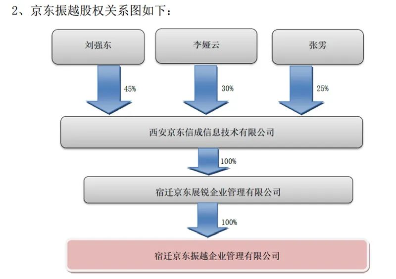 公开资料显示,京东振越是西安京东信成信息技术有限公司100%股权的孙公司。后者的股东为刘强东、李娅云、张雱,分别持有45%、30%及25%的股权,刘强东为实控人。
