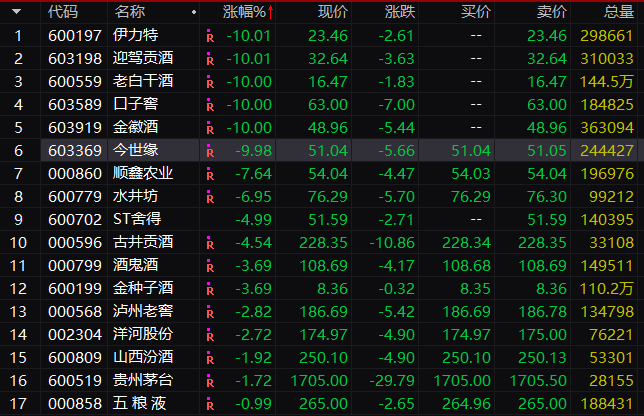 11月13日,一直强势的白酒股全线杀跌,多股出现跌停,整个板块市值蒸发近1000亿元,白酒指数暴跌近6%。