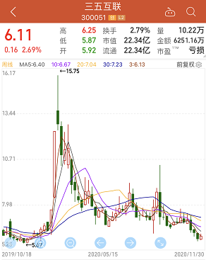 公告发布后,三五互联股价随即开启连续涨停,其间股价最高涨幅超过120%。