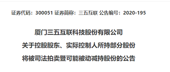 11月30日晚间,三五互联公告称,公司近日收到控股股东、实际控制人龚少晖转来的上海金融法院《拍卖公告》及龚少晖告知函,获悉龚少晖所持的部分股份将在淘宝网上被拍卖,进而可能导致股份被动减持。