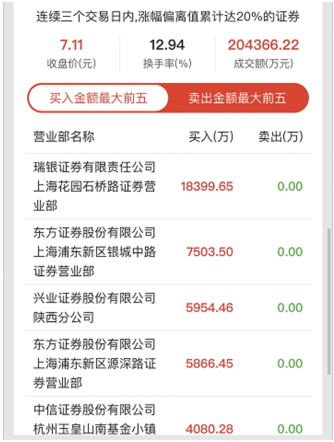 交易所公布的12月1日盘后数据显示,连续三个交易日内,瑞银证券有限责任公司上海花园石桥路证券营业部买入18399.65万元,兴业证券陕西分公司买入7503.5万元。12月2日交易所未公布最新龙虎榜数据。
