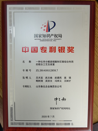 近日,国家知识产权局下发《国家知识产权局关于第二十一届中国专利奖授奖的决定》(国知发运字〔2020〕28号),山东鲁北企业集团总公司的“一种化学分解废硫酸和石膏综合利用的联合工艺及装置”(专利号ZL201410112858.7)发明专利获中国专利银奖,这也是滨州市知识产权领域目前获得的最高奖项。