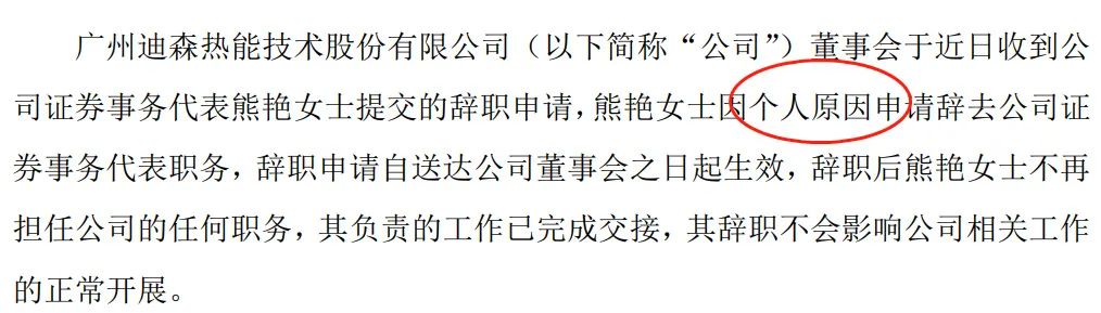 其中,熊艳在4月17日当选证券事务代表,仅仅7个月之后,熊艳在11月20日就离职了。离职的原因是“个人原因”。