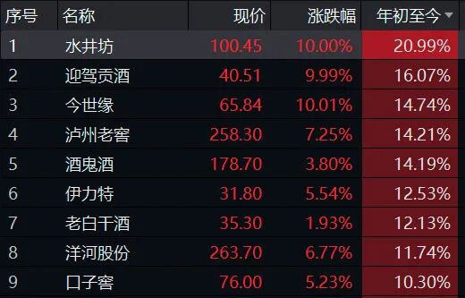 另据Wind数据显示,2021年前两个交易日,Wind白酒指数成分股一共有9家公司累计涨幅超过10%,所有18只成分股近两日累计涨幅均为正值。