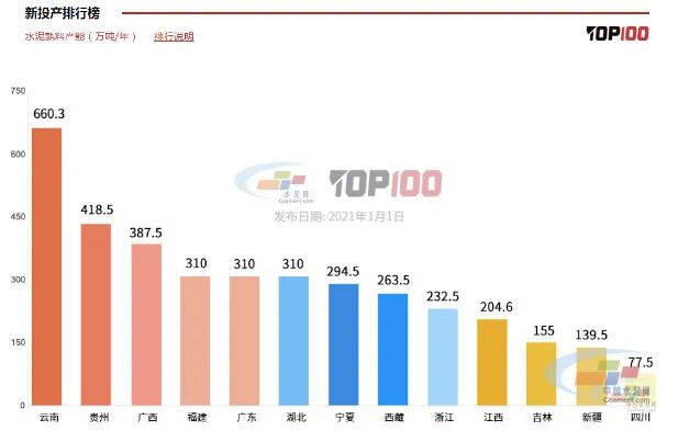 2020年水泥熟料新投产排行榜图片来源:中国水泥网