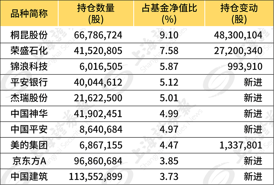 以郑澄然、孙迪俩人共同管理的广发高端制造为例,去年四季度末,基金大手笔加仓桐昆股份4830.01万股,加仓荣盛石化2720.03万股,分列前两大重仓股,平安银行、杰瑞股份、中国神华、中国平安、京东方A、中国建筑成为新进前十大重仓股。隆基股份、通威股份、阳光电源等新能源板块个股不再位列前十大重仓股。