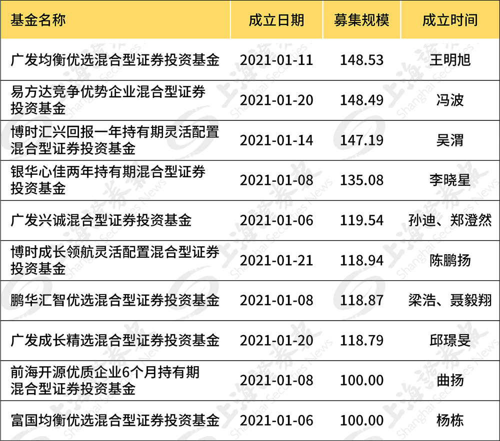记者梳理发现,今年以来成立的募集规模在100亿元以上的主动权益基金共有10只。具体来看,广发基金共有3只,博时基金共有2只,富国基金、银华基金、前海开源基金、鹏华基金、易方达基金各有一只。