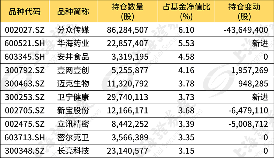 以他管理的鹏华新兴产业为例,四季度,大幅减仓分众传媒4300多万股,减持前期涨幅较高的新宝股份647.91万股。华海药业、卫宁健康成为新进前十大重仓股。