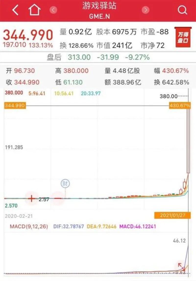 万得数据显示,截至周三收盘,游戏驿站暴力上涨133%。本周以来,公司股价累计上涨逾430%。