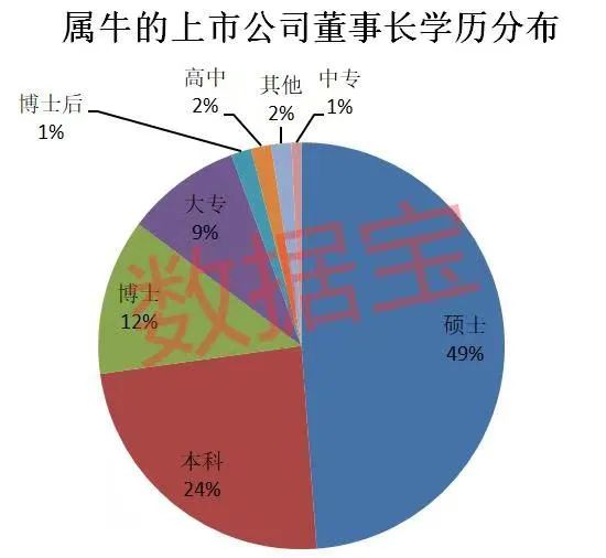 性别来看,男性董事长有258位,占比93.5%,是女性董事长数量的14倍。从学历上看,除26人未公布学历外,其余250人中,有4位董事长为博士后,分别是博世科董事长宋海农、孚能科技董事长王瑀、昊海生科董事长侯永泰、三木集团董事长卢少辉。31位董事长为博士学历,硕士学历是牛年出生董事长的主流,占比接近50%。