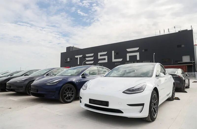 特斯拉上海超级工厂外停放的特斯拉MODEL 3新车