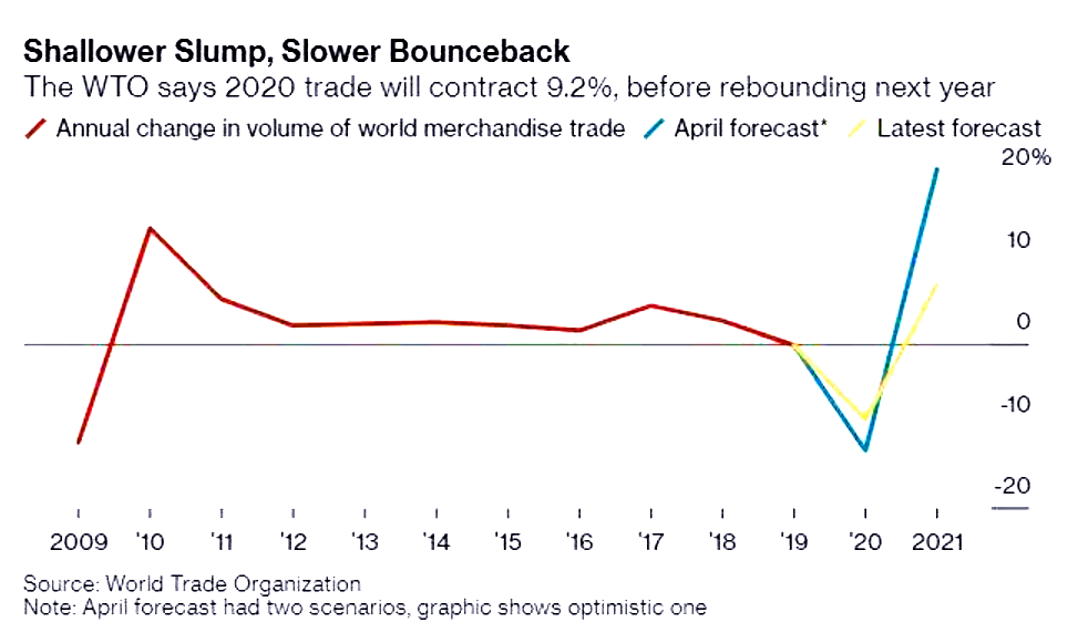 (预计2021年全球商品贸易增长7.2% 来源:WTO)