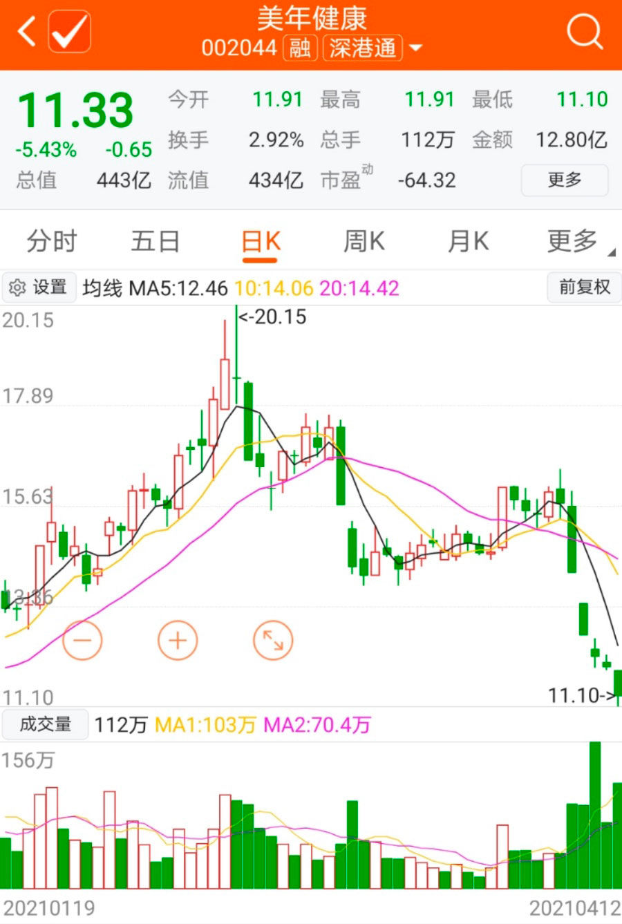 体检龙头股美年健康,近期走势有点尬