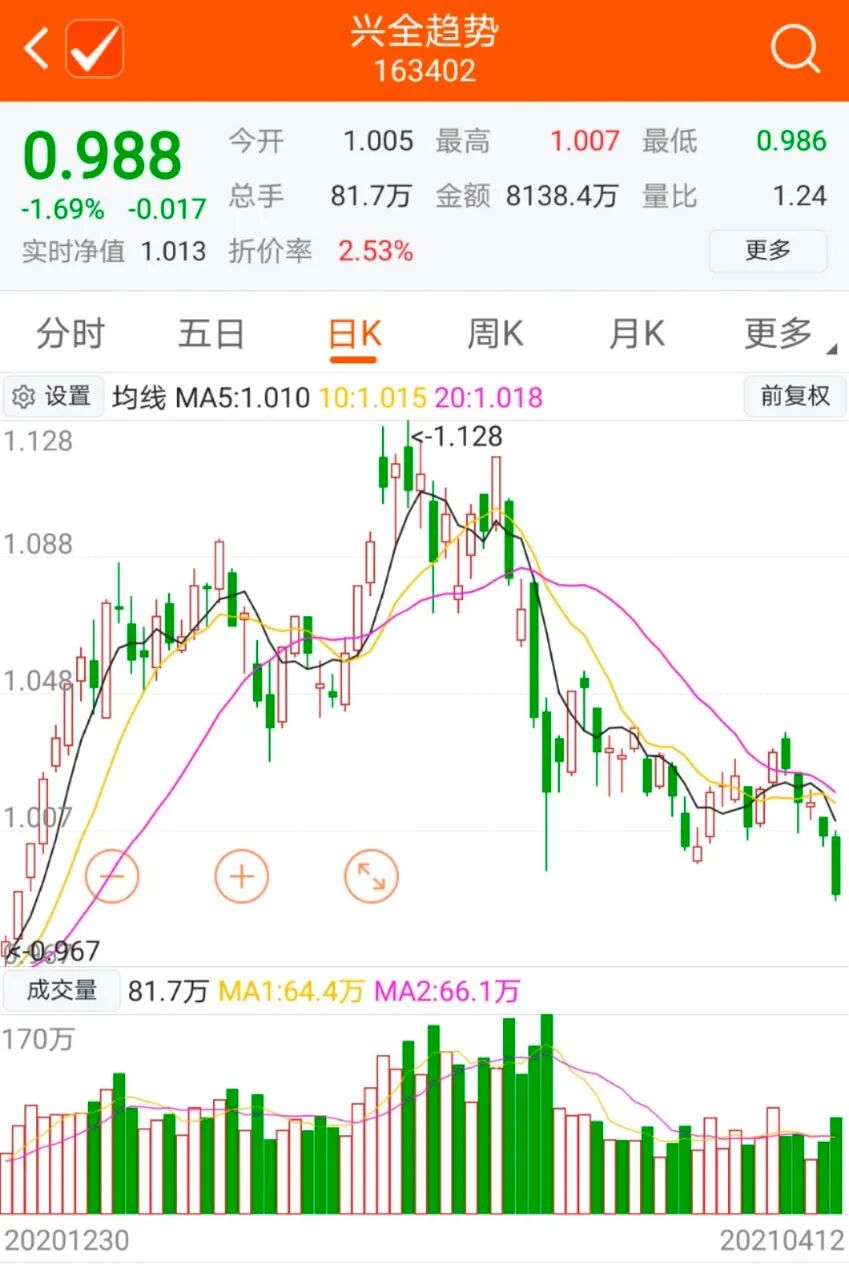 从兴全趋势净值表现看,年内净值最高1.128元,到最近的0.988元,回撤幅度仅有12个点左右。